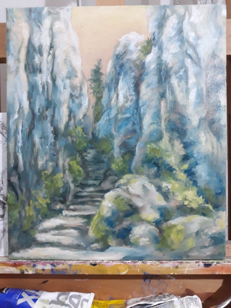 Hluboké tajemství a kouzlo malby na plátno olejovými barvami objevuji už dlouho a postupně. Shledávám velký potenciál v možnosti vyjádřit plochami barevných tónů na plátně prostor, atmosféru, objekty a jejich charakteristickou povahu. Styl impresionismu je mi velmi blízký.
